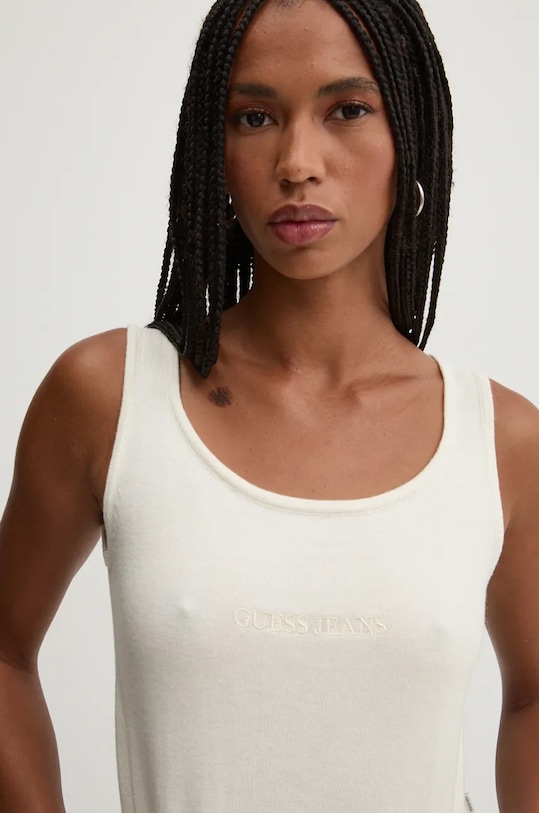 Топ из коллекции Guess Jeans, выполненный из трикотажа. Модель выполнена из чрезвычайно приятного на ощупь материала. - Приталенный крой, подчеркивающий силуэт. - Нерегулируемые, несъемные лямки. - Нашивка с логотипом спереди. - Нижний край отделан удобной эластичной манжетой. - Длина: 42 см. - Ширина под мышками: 40 см. - Размеры указаны для размера: S.