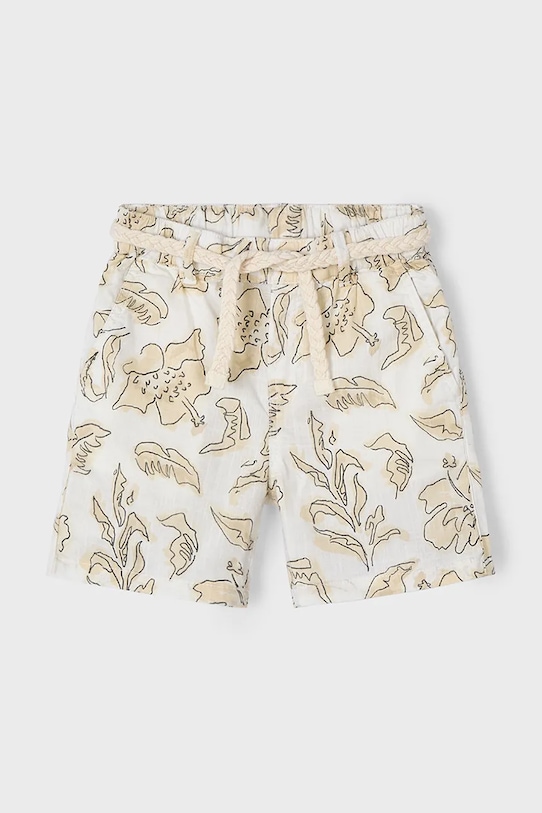 Детские шорты из коллекции Mayoral. Изготовлены из узорчатой ткани. - Простой дизайн, не стесняющий движений. - Накладные карманы. - Обхват талии обычный. - Пояс на талии. – Инициатива «Лучший хлопок». Изделия с этой маркировкой содержат не менее 50% хлопка от розничного продавца или бренда, участвующего в инициативе «Лучший хлопок» и инвестирующего в развитие BCI.
