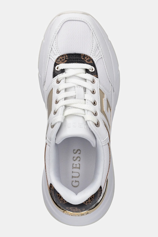 Кроссовки из коллекции Guess, выполненные из комбинации текстиля и синтетического материала. - Широкий носок предотвращает давление на пальцы ног. - Усиленный задник с мягким наполнителем защищает пятку от истирания. - Плоские шнурки устраняют давление на подъем стопы, обеспечивая хорошую посадку и комфорт. - Резиновая подошва прочная и устойчивая к повреждениям.