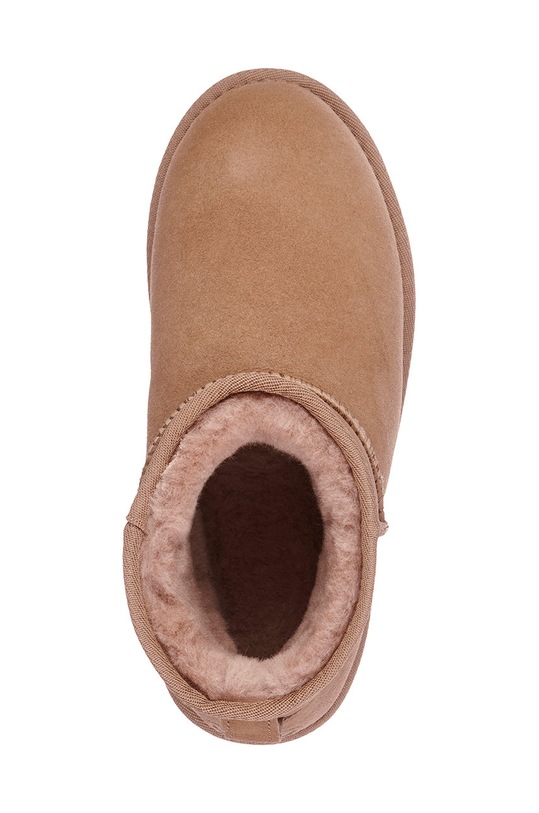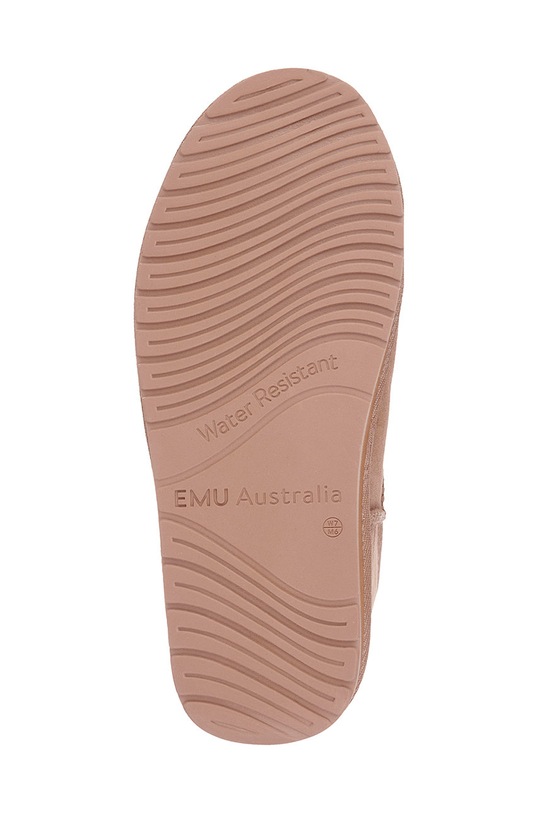 Зимние ботинки из коллекции Emu Australia. Изготовлены из замши. - Имеет сертификат Woolmark, который выдается изделиям из натуральной чистой шерсти, произведенным на фабриках, отвечающих соответствующим высоким стандартам. - Промежуточная подошва из ЭВА обеспечивает легкость и амортизацию. - Модель утеплена натуральной овчиной. - Круглый нос. - Рифленая подошва.