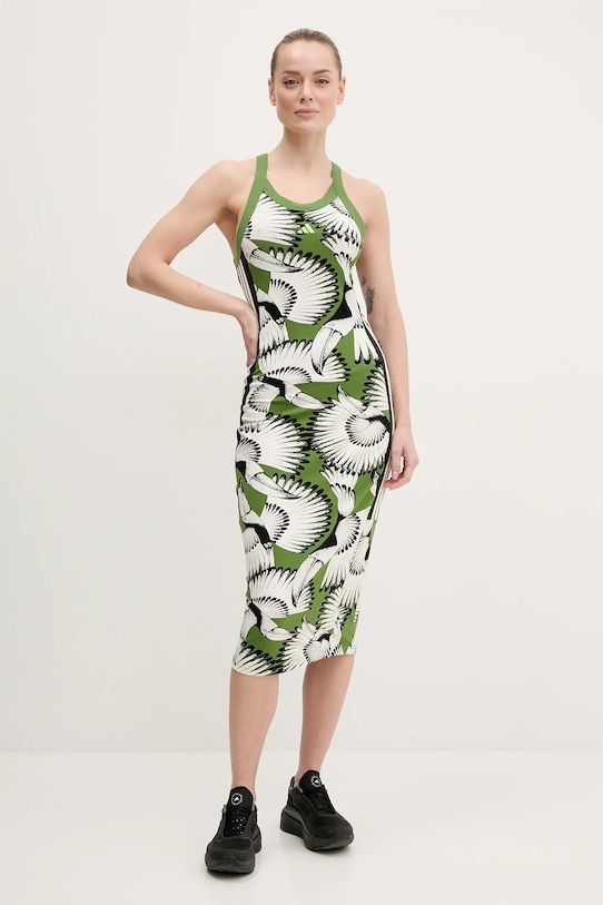 Это платье из коллекции adidas выполнено из тонкой, эластичной ткани. Модель выполнена из исключительно комфортного материала с высоким содержанием хлопка. - Модель мини-длины. - Приталенный крой, подчеркивающий силуэт. - Круглый ребристый вырез. - Модель с вырезом на спине. - Длина: 110 см. - Ширина под мышками: 38,5 см. - Размеры указаны для размера: S.
