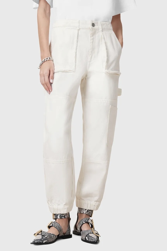 Эти зауженные джинсы из коллекции AllSaints с высокой талией выполнены из гладкого денима. - Органический хлопок выращивается без использования вредных химикатов, химических пестицидов и искусственных удобрений. - Этот продукт частично изготовлен из переработанного хлопка. - Модель с высокой талией, застежкой на пуговицы и молнию. - Два накладных кармана спереди.