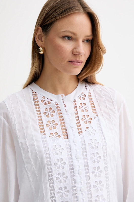 Эта рубашка Charo Ruiz Ibiza выполнена из гладкой ткани. Эта модель выполнена из исключительно комфортного материала с высоким содержанием хлопка. - В комплект модели входит нижняя юбка. - Простой дизайн, не стесняющий движений. - Рукава отделаны удобными эластичными манжетами. - Длина: 56 см. - Ширина под мышками: 50 см. - Размеры указаны для размера: S.