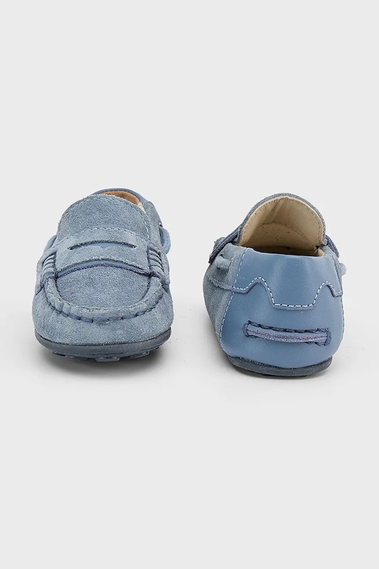 Детские мокасины из коллекции Mayoral. Изготовлены из замши. - Кожаная стелька комфортна для стопы и предотвращает натирание, потертости и появление неприятного запаха. - Модель с текстильной подкладкой. - Резиновая подошва прочная и устойчивая к повреждениям. - Круглый нос. - Жесткий верх обеспечивает устойчивость. - Декоративные детали. - Уютный салон.