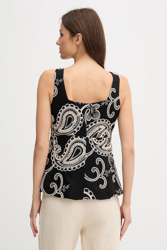 Эта блузка из коллекции Pedro del Hierro выполнена из тонкой ткани, идеально подходящей для теплого времени года. Она изготовлена из дышащего материала с высоким содержанием вискозы. - Удобная застежка на кнопки позволяет легко надевать и снимать. - Модель с декоративной вышивкой. - Длина: 60 см. - Ширина под мышками: 43 см. - Размеры указаны для размера: S.