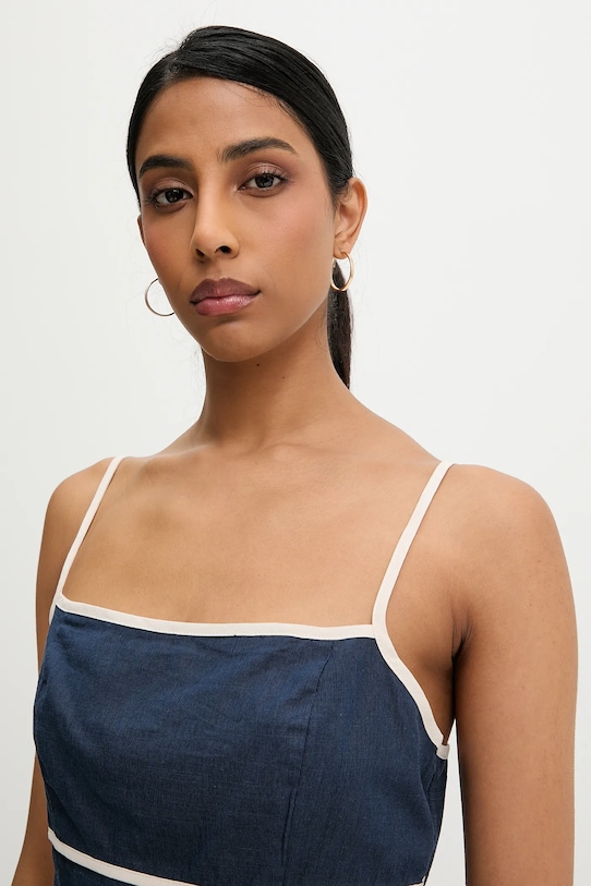 Топ и юбка из коллекции Answear.LAB, выполненные из тканого материала. Эта модель выполнена из исключительно комфортного и дышащего материала, идеально подходящего для теплого времени года. - Приталенный верх и свободный низ. - Алмазный вырез. - Эластичная вставка сзади. - Дополнительный слой материала в виде подкладки. - Застежка на молнию и крючок сбоку.