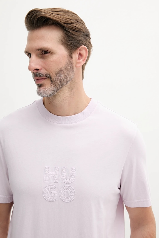 Футболка из коллекции HUGO выполнена из тонкой, эластичной ткани. Модель выполнена из исключительно комфортного хлопкового материала. - Изделия линейки WE ACT не менее чем на 60% изготавливаются из материалов, полученных более экологичным способом. - Простой дизайн, не стесняющий движений. - Классический круглый вырез. - Короткий рукав. - Модель с аппликацией.