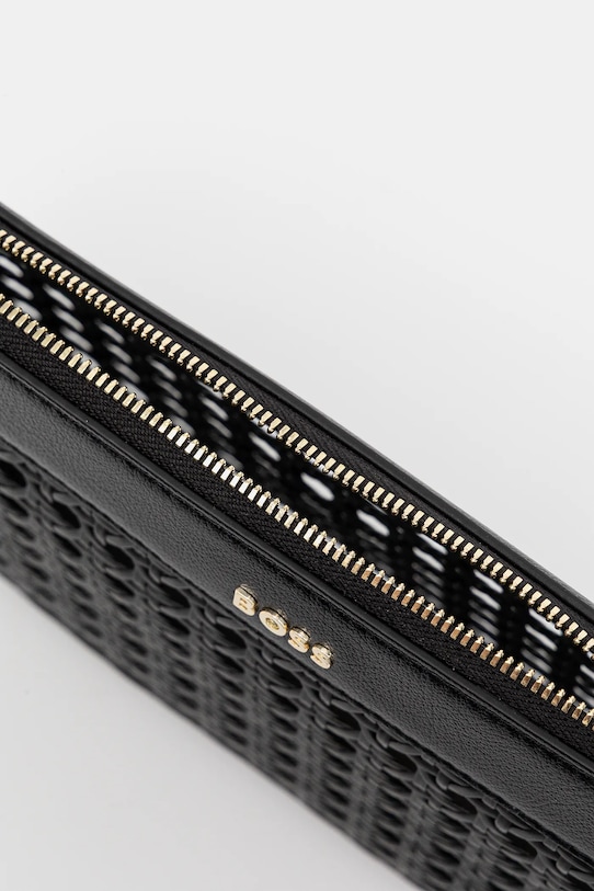 Небольшая сумочка из коллекции BOSS. Застегивается на молнию, выполнена из комбинации синтетического материала и экокожи.