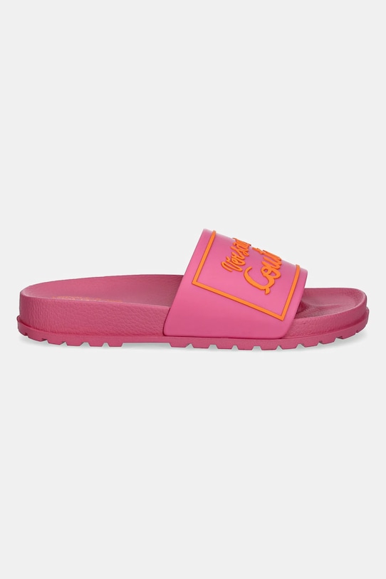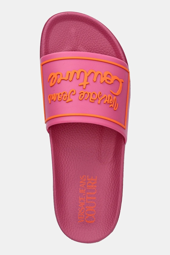 Эти шлёпанцы из коллекции Versace Jeans Couture изготовлены из синтетического материала. Они оснащены прочной и износостойкой резиновой подошвой. - Резиновая подошва прочная и устойчивая к повреждениям. - Профилированная, мягкая стелька гарантирует комфорт использования. - Модель на плоской подошве. - Длина вставки: 23 см. - Размеры указаны для размера: 36.