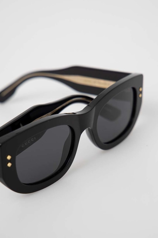 Солнцезащитные очки из коллекции Gucci. Эта модель с гладкими линзами и пластиковой оправой имеет защиту UV 400. Полученный вами футляр может отличаться от изображенного на фотографии. Производитель отправляет футляры случайным образом, поэтому выбрать футляр невозможно.