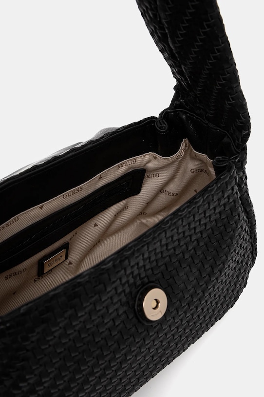 Небольшая сумочка из коллекции Guess. Модель на молнии, выполнена из экокожи.