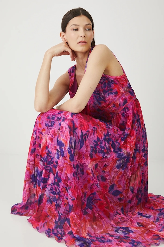 Платье из коллекции «Медицина». Расклешенный фасон из узорчатой ткани.
