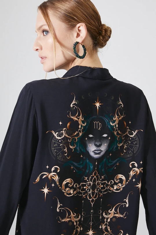 Рубашка из коллекции «Медицина». Изготовлена из набивной ткани, с воротником.