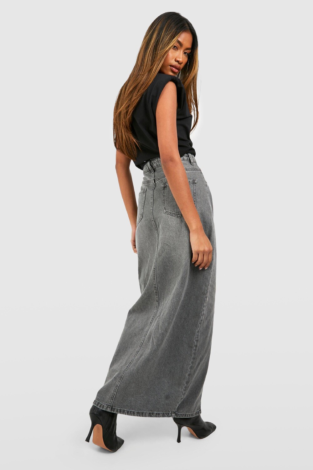 Джинсовая юбка макси с разрезами передней части Boohoo, серый 6 844₽