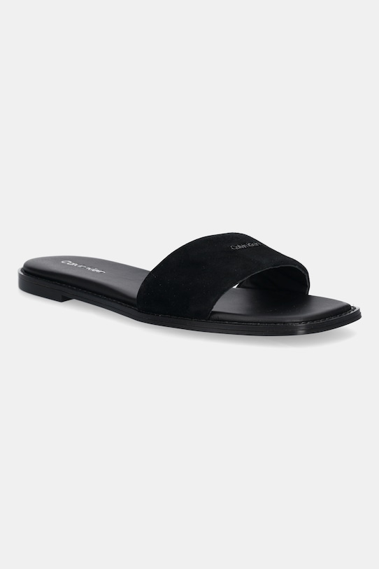 Замшевые шлепанцы Flat Sandal Squared HF Sue Calvin Klein, черный