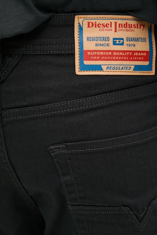 Джинсы из коллекции Diesel свободного кроя с высокой талией. Изготовлены из гладкого денима.