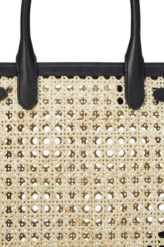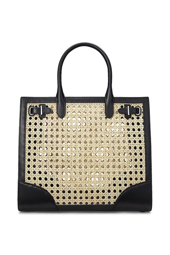 Корзина среднего размера из коллекции Lauren Ralph Lauren. Эта модель с открытым верхом выполнена из тканого материала и натуральной кожи.