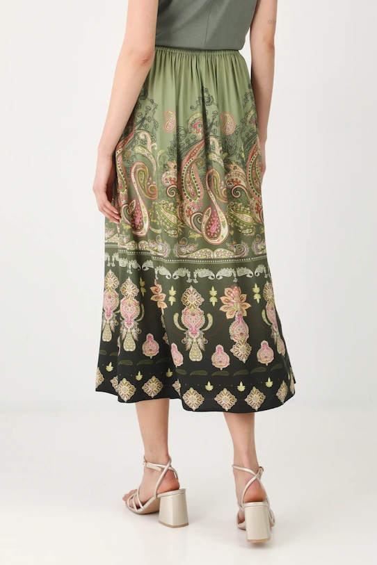 Юбка из коллекции «Медицина». Расклешенный фасон из узорчатой ткани.