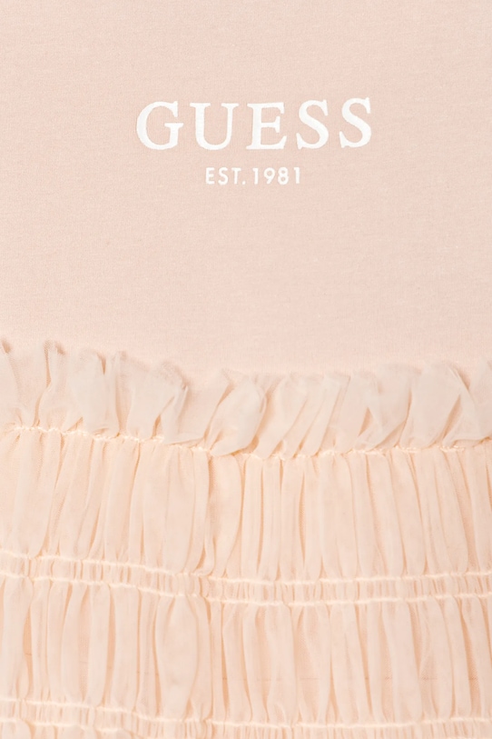 Это детское платье из коллекции Guess выполнено из комбинации двух разных материалов. Эта модель выполнена из исключительно комфортного и дышащего материала, идеально подходящего для теплого времени года.