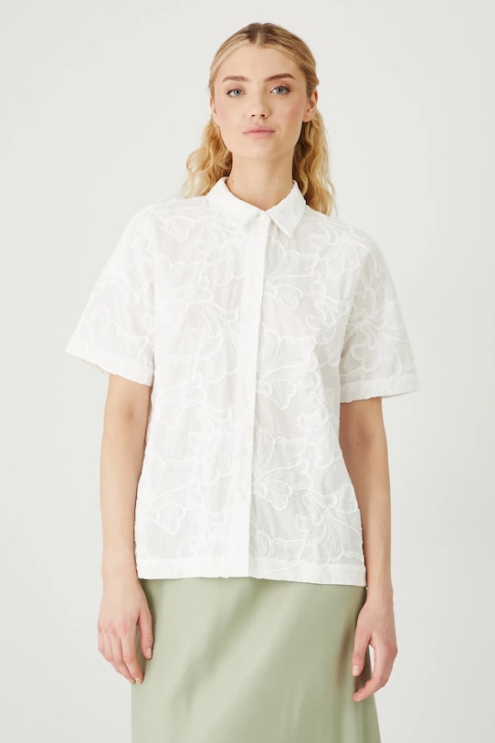 Рубашка из коллекции «Медицина». Изготовлена из ткани с декоративной вышивкой. С воротником.