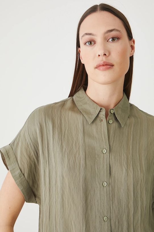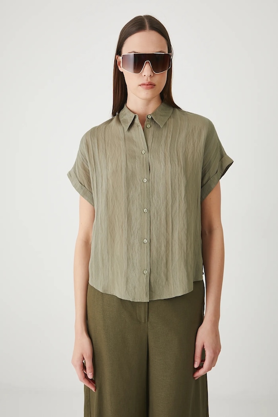 Рубашка из коллекции «Медицина». Изготовлена из гладкой ткани, с воротником.