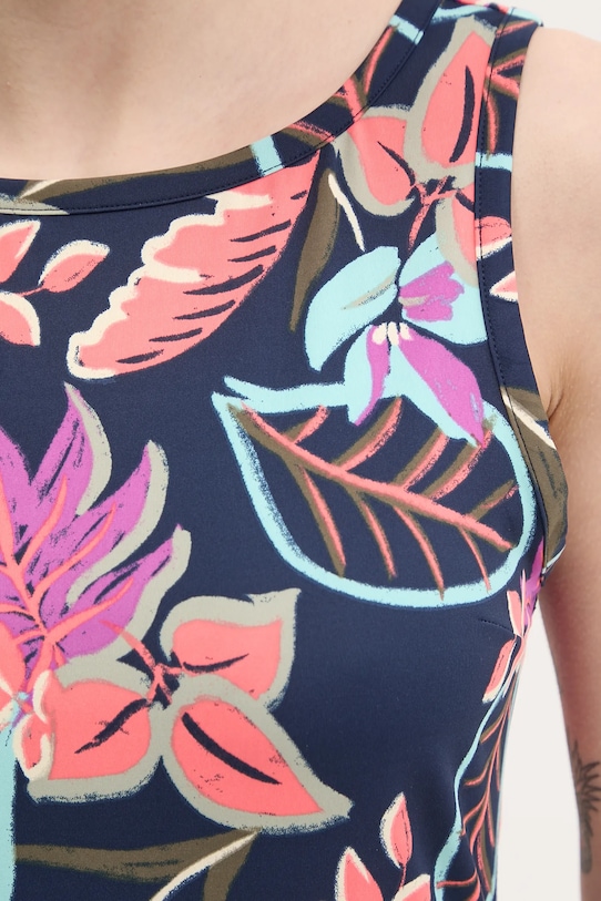 Это платье из коллекции Columbia выполнено из тонкого эластичного трикотажа. Содержание полиэстера делает ткань менее мнущейся.