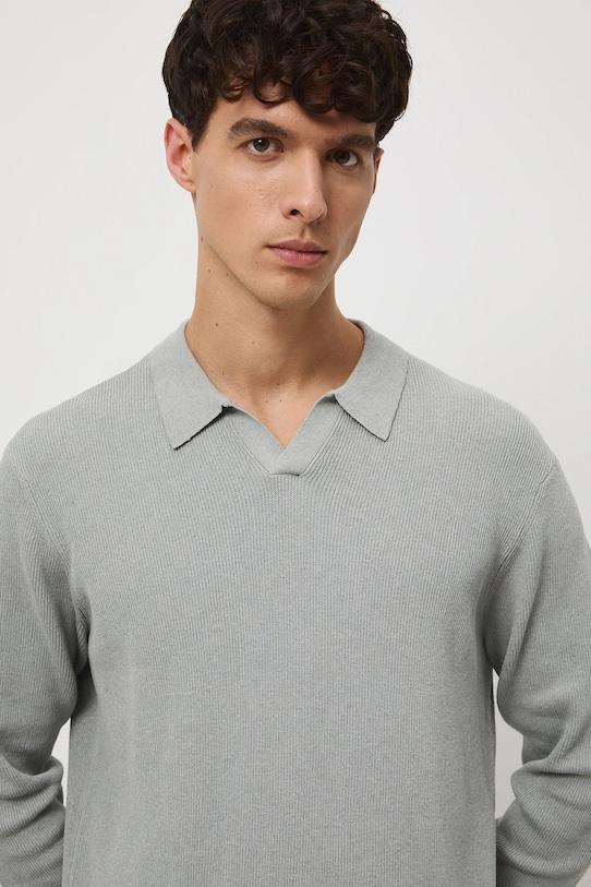 Свитер из коллекции «Медицина». Модель с воротником, выполнена из трикотажной ткани в рубчик.