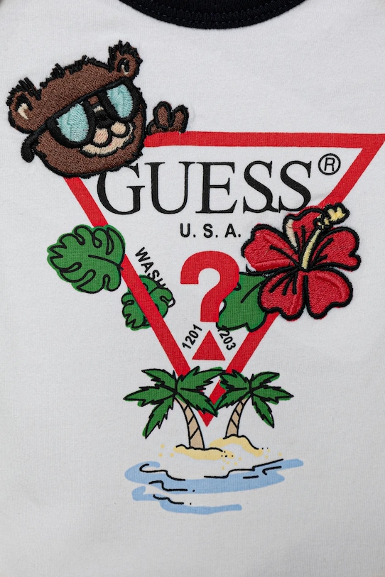 Этот детский комплект из коллекции Guess выполнен из тонкой, эластичной ткани.