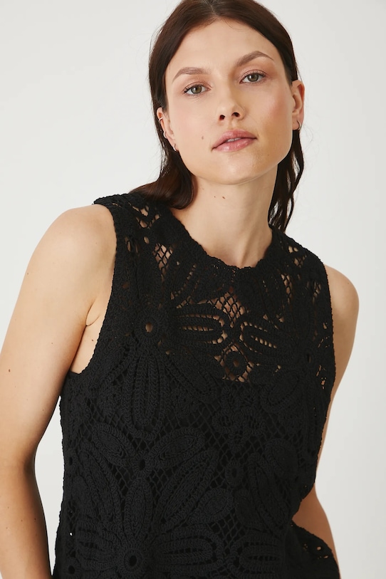 Топ из коллекции «Медицина». Выполнен из ажурного трикотажа.