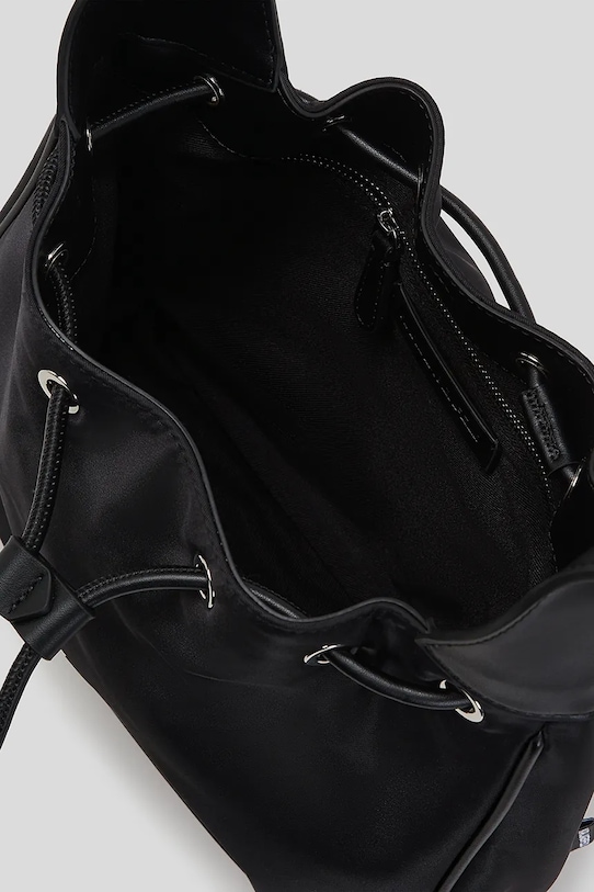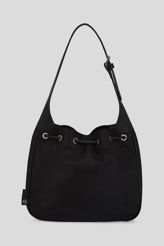 Сумка среднего размера из коллекции Карла Лагерфельда. Модель с застёжкой-крючком, выполнена из синтетического материала.
