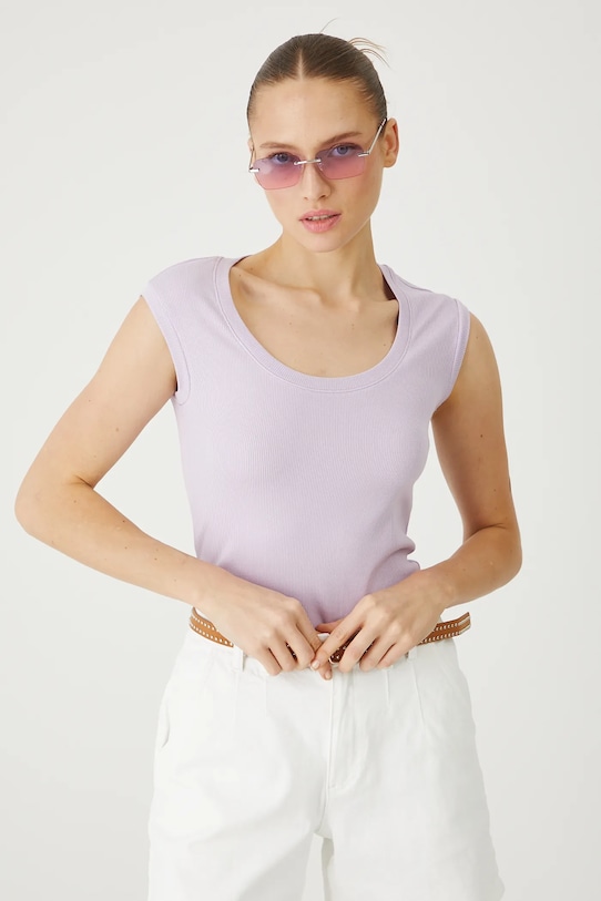 Топ из коллекции Medicine. Изготовлен из трикотажной ткани в рубчик.