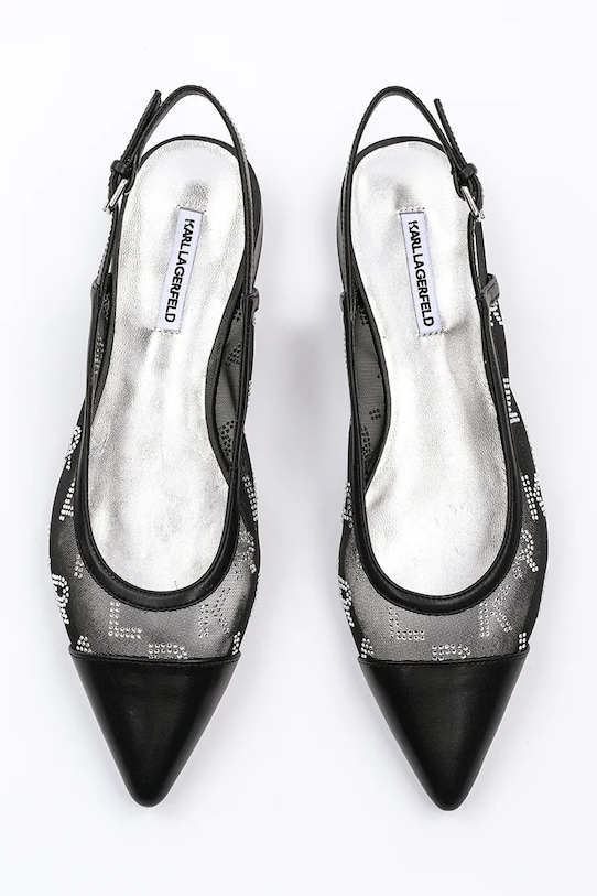 Балетки из коллекции Карла Лагерфельда. Изготовлены из комбинации синтетического материала и натуральной кожи.