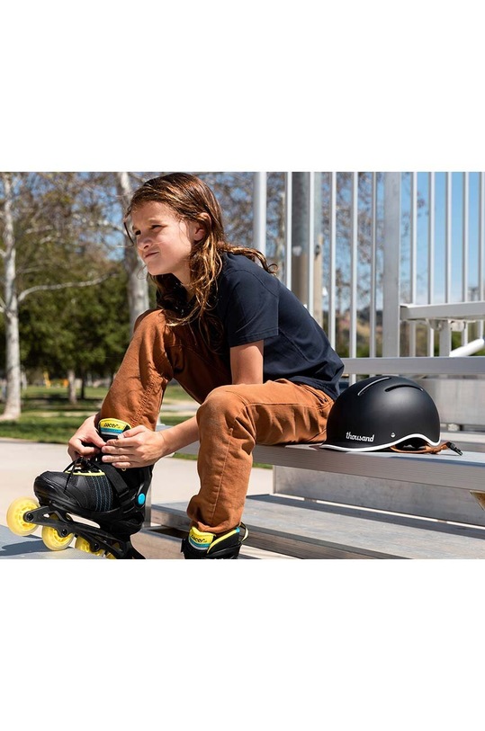 Шлем из коллекции «Тысяча». Модель изготовлена из пластика. - Вдохновленный дизайном и простотой старинных мотоциклов, он выполнен в традиционной цветовой палитре 50-х и 60-х годов. - Конструкция с 6 вентиляционными отверстиями и внутренними каналами для активного охлаждения. - Улучшенная форма внутренней облицовки для большего комфорта вождения. - Предназначен для езды на велосипеде и скейтборде. - Удобная магнитная пряжка Fidlock для управления одной рукой. - Интегрированная система с несколькими точками регулировки для индивидуальной посадки. - Низкопрофильный козырек. - Подходит для окружности головы от 49 до 53 см. - Вес шлема: 390 г. - Соответствует стандарту безопасности CPSC США для велосипедных шлемов для детей от 5 лет и старше. - Сертифицировано по стандартам CPSC и ASTM для велоспорта, катания на роликовых коньках и скейтборде.