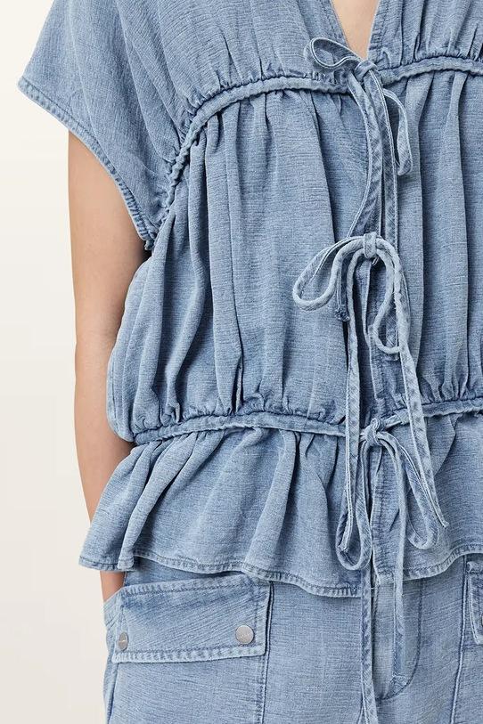 Эта блузка из коллекции AllSaints выполнена из лёгкой ткани, идеально подходящей для тёплого времени года. Она дополнена завязкой на вырезе.