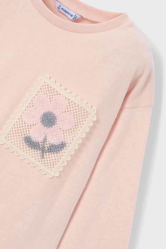 Детский топ с длинными рукавами из коллекции Mayoral. Изготовлен из тонкого, слегка эластичного трикотажа и украшен эффектной аппликацией.