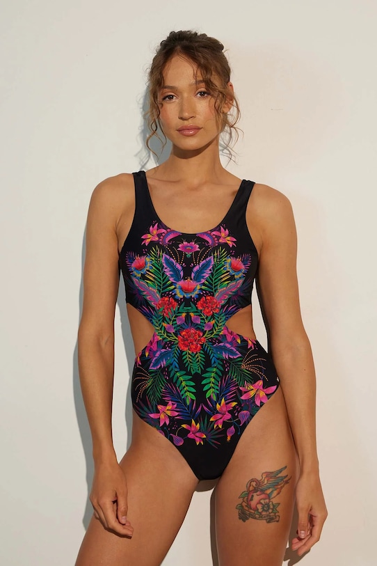 Слитный купальник из коллекции Medicine. Изготовлен из ткани с рисунком.