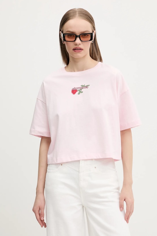 Хлопковая футболка Converse, розовый