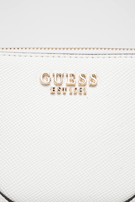Небольшая сумочка из коллекции Guess. Модель на молнии, выполнена из экокожи.