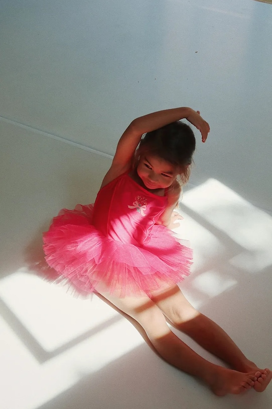 Платье из коллекции Konges Sløjd. Эта расклешенная модель выполнена из комбинации двух разных материалов.