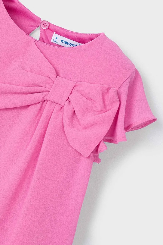 Детская блузка из коллекции Mayoral. Изготовлена из гладкой ткани, имеет круглый вырез горловины.