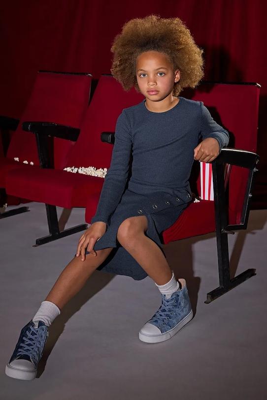 Это платье из коллекции Mayoral имеет приталенный крой и выполнено из тонкой эластичной ткани.