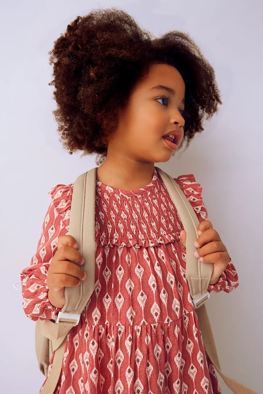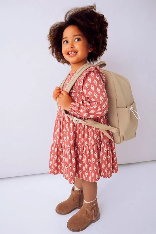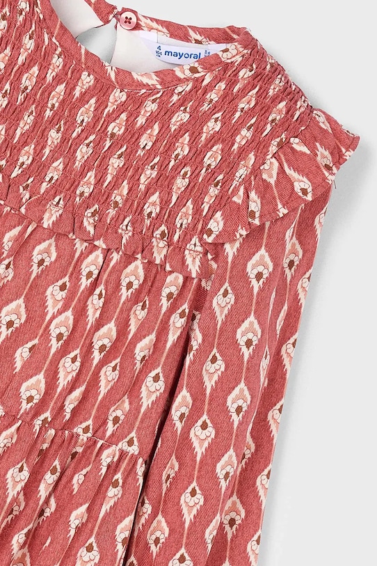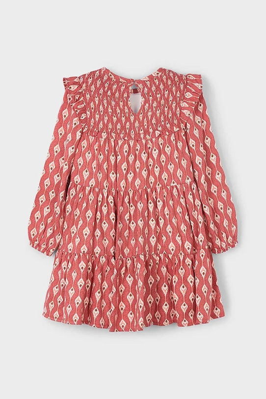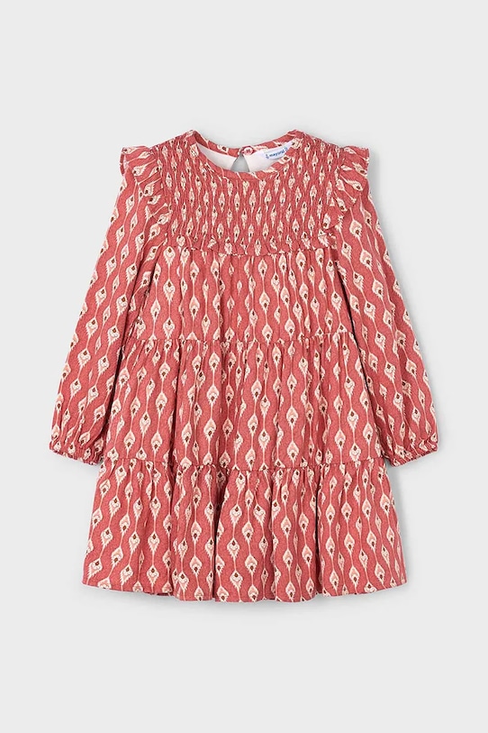 Детское платье из коллекции Mayoral. Расклешенный фасон из узорчатой ткани.
