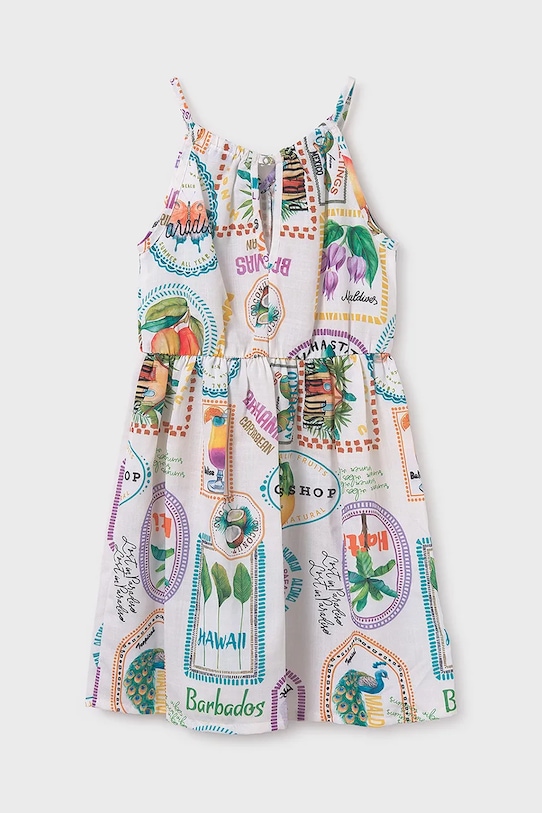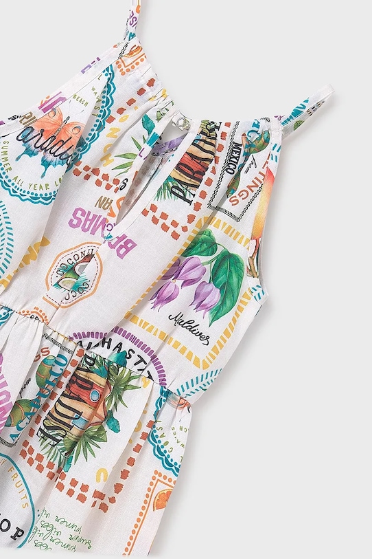 Лёгкое детское платье из коллекции Mayoral. Расклешённый фасон выполнен из тонкой, слегка тянущейся ткани.