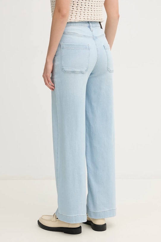 - Модель с высокой талией, застежкой на пуговицы и молнию.