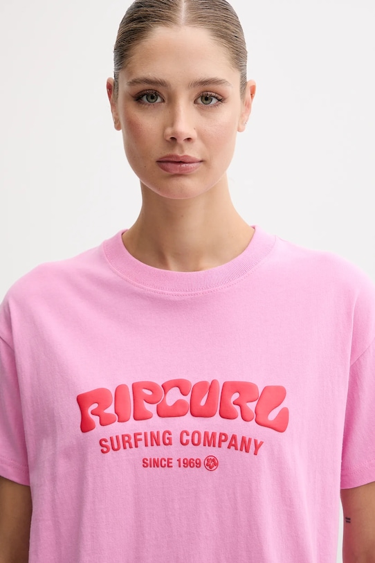 Хлопковая футболка Rip Curl, розовый