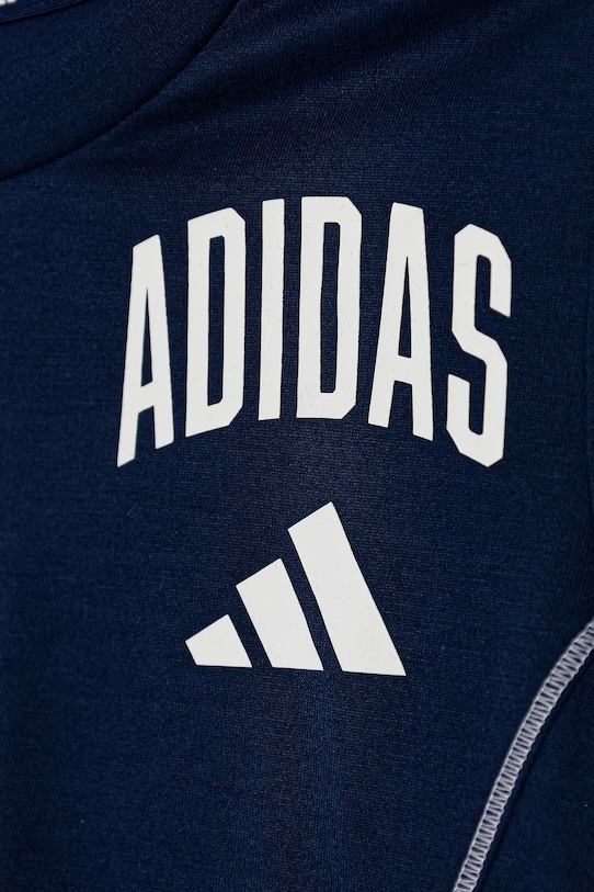 Эта детская футболка из коллекции adidas выполнена из тонкой эластичной ткани. Содержание полиэстера делает материал менее мнущимся.
