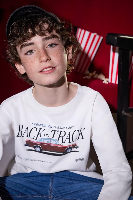 Детский лонгслив из коллекции Mayoral. Изготовлен из принтованного хлопкового трикотажа.