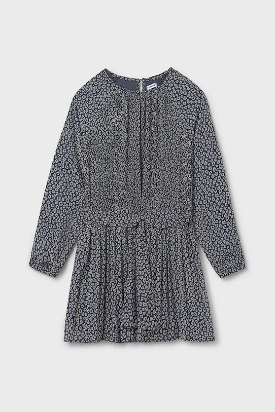 Платье из коллекции Mayoral. Расклешенный фасон из принтованной ткани.