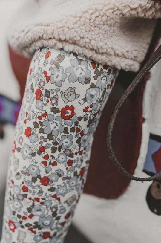Детские леггинсы из коллекции «Это моё». Изготовлены из узорчатой ткани.