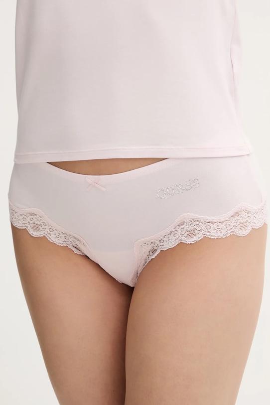 Этот комплект из коллекции Guess включает в себя трусы и футболку. Изготовлен из эластичной ткани.
